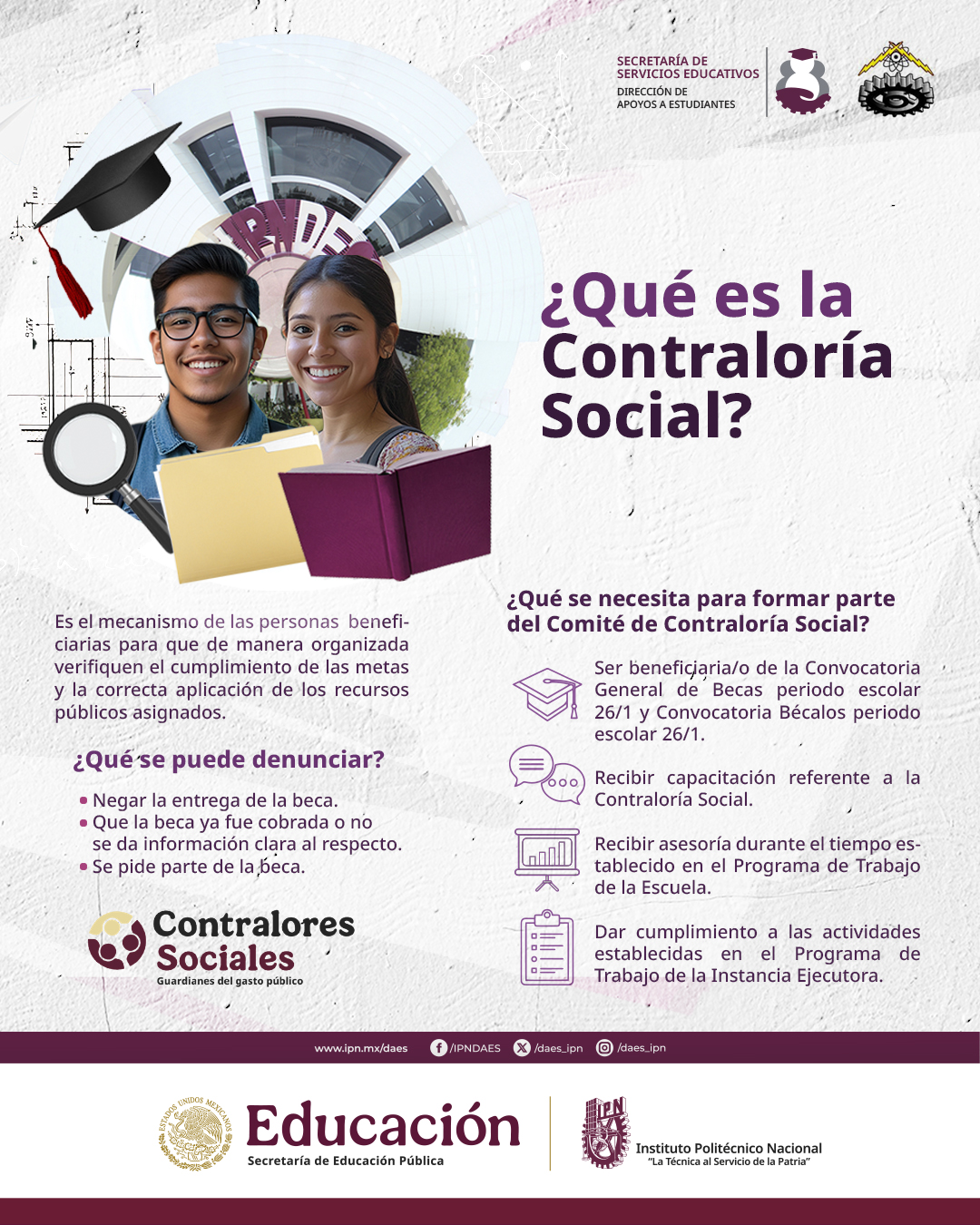 Alumnas/os inscritos en los niveles medio superior y superior de IPN en situación académica regular o con 1 adeudo de materia, en las modalidades: escolarizada, mixta o no escolarizada, y que participe en los talleres culturales de la Dirección de Difusión Cultural.